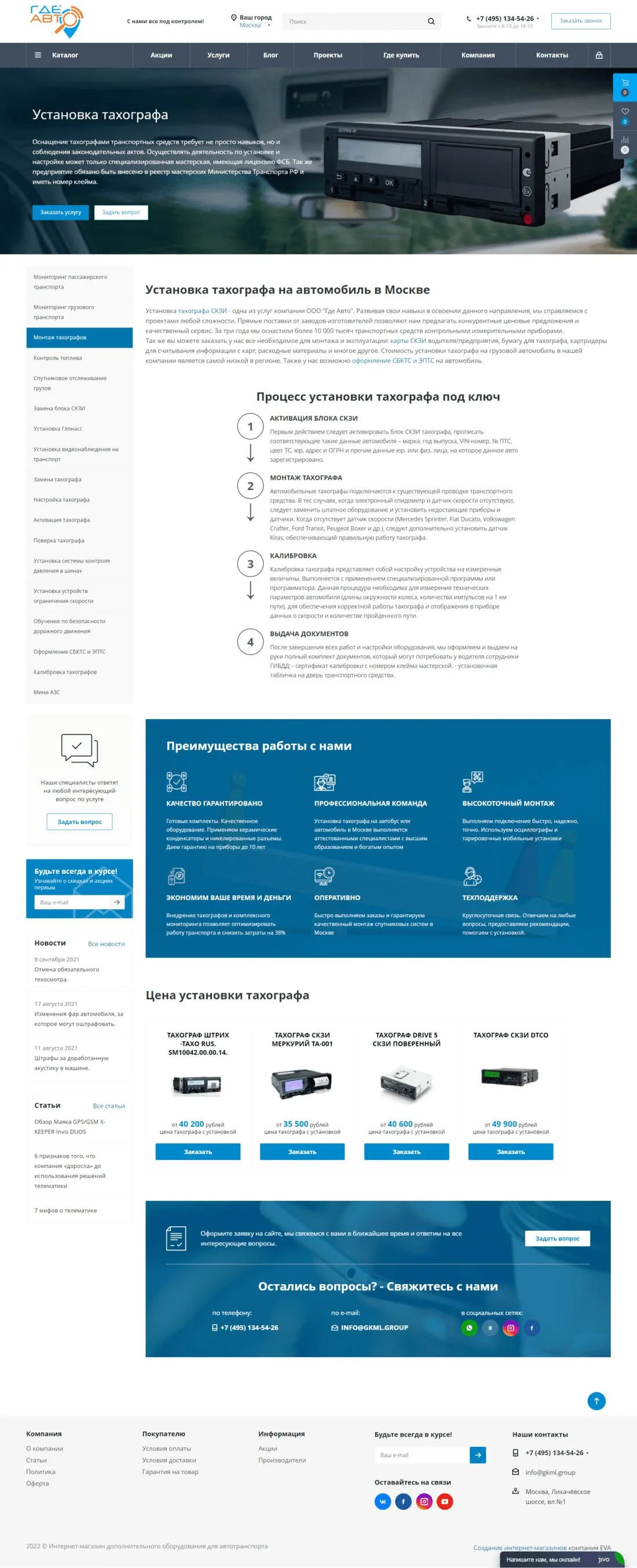 Компания "Где Авто" предлагает своим клиентам полный цикл реализации коммерческих и государственных проектов для внутреннего контроля и учета. Осуществляет поставку и монтаж систем мониторинга транспорта, контроля топлива, а также установку тахографов, изготовление карт водителя, переоборудование транспортных средств и т.д. Собственный магазин оборудования и лицензированный сервисный центр позволяет комплексно подходить к решению каждой поставленной задачи.